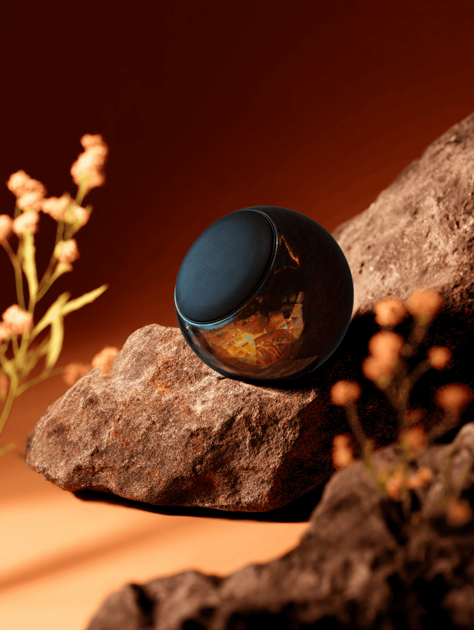 Freewheeler is a cordless, rollable stereo speaker designed in cooperation with Ron Arad. Made in KRION®, it delivers true stereo sound from a single unit. Equipped with a built-in receiver and amplifier, it connects via a two-way Bluetooth transmitter—no cables or extra components needed. Just roll it wherever you want and enjoy high-quality sound, indoors or outdoors.